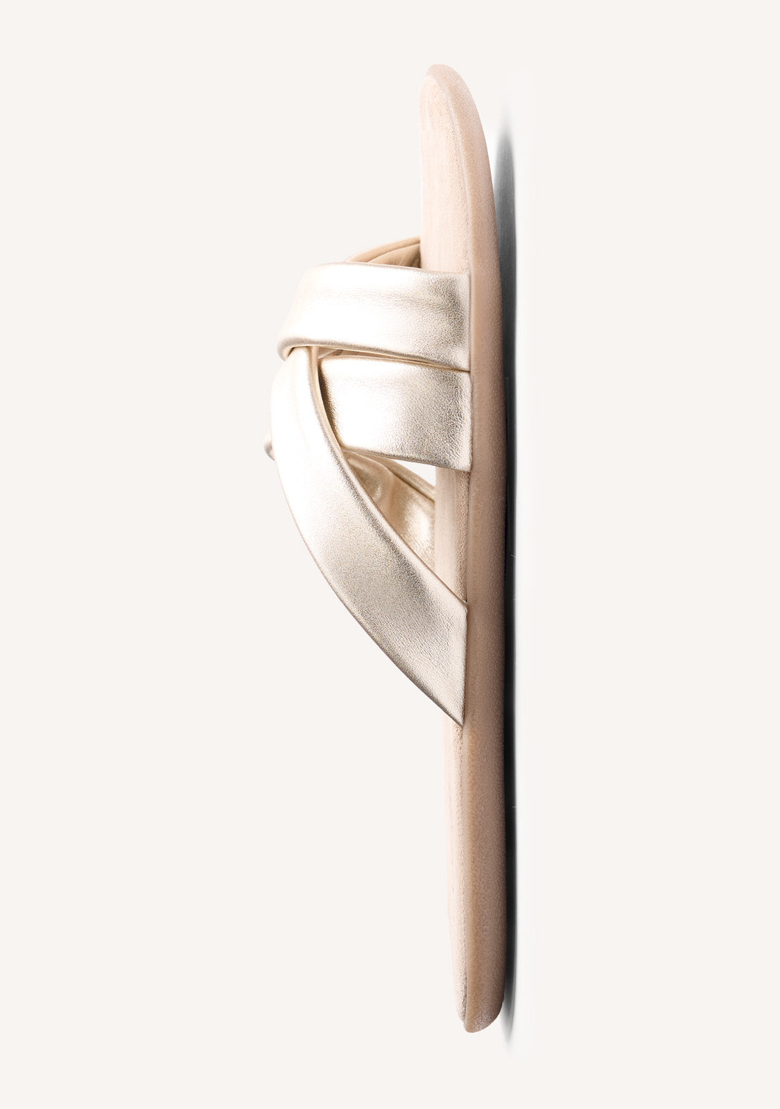 Sandalias planas de piel metalizada con tiras. Diseñadas siguiendo las tendencias minimalistas para garantizar la pisada natural. Incluyen una plantilla de transición para facilitar una adaptación progresiva a quienes se inician en el calzado barefoot.