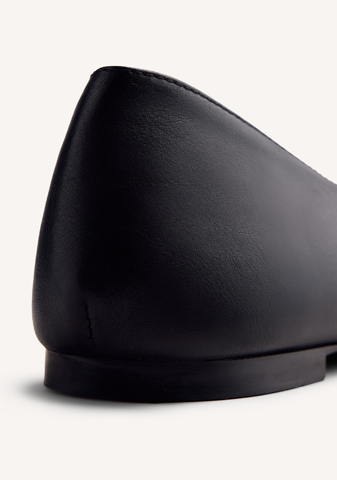 Bailarinas de piel con planta acolchada. Punta redonda. Este modelo destaca por su flexibilidad y ligereza al prescindir de topes y contrafuertes.