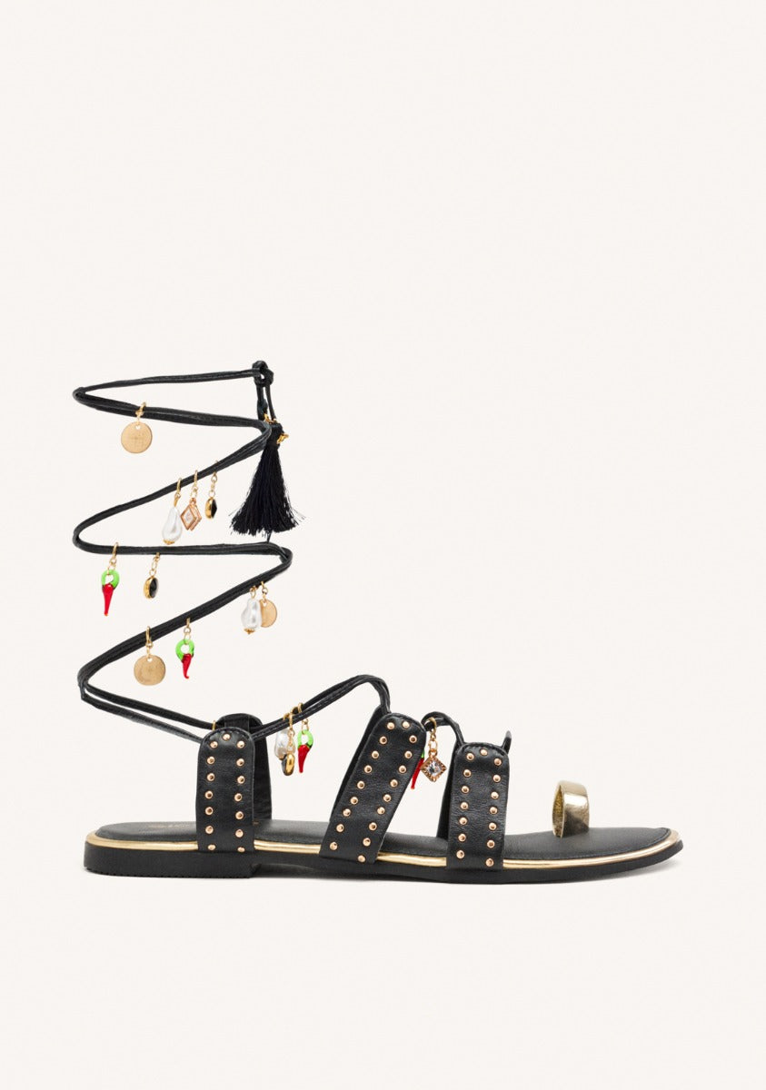 SANDALIAS PIEL ABALORIOS Y TACHAS IONE
