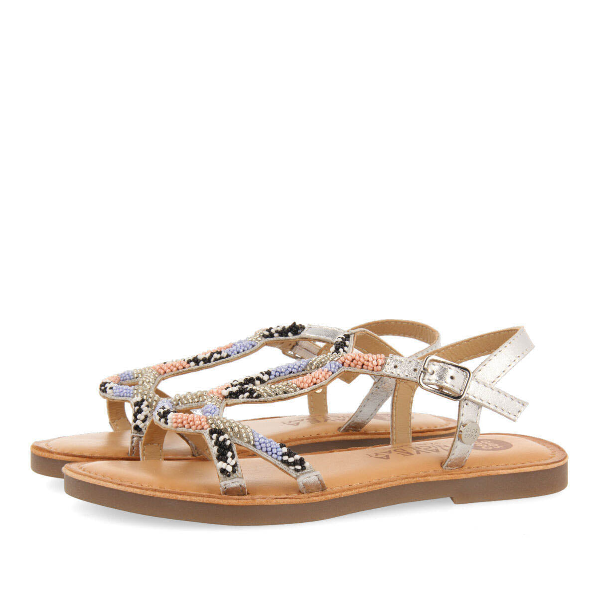 SANDALES EN PEAU AVEC DÉTAILS ETHNIQUES COULEUR BLEUE POUR FILLE CASOLE