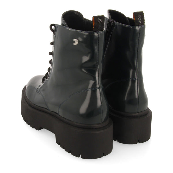 Toutes les tendances en bottines sont chez Gioseppo Woman 2022. Vous avez choisi votre modèle préféré ? Bottines type motard à lacets en matière synthétique vert foncé effet vernis. Double semelle de couleur noire. Semelle en peau transpirable à rembourrage confortable et doublure en polyester transpirable. Semelle en caoutchouc TPR.
