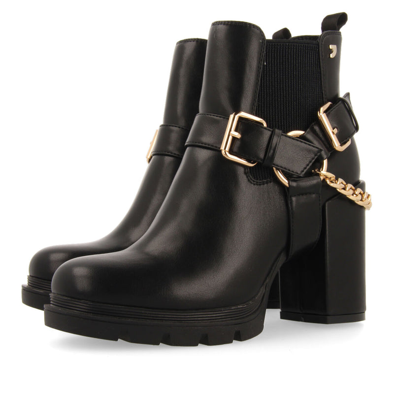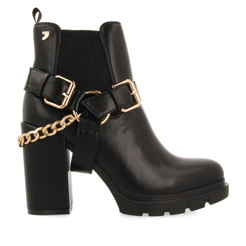 BOTTINES NOIRES TYPE CHELSEA AVEC DÉTAIL DE BOUCLES ET CHAÎNETTE ET SEMELLE TRACK POUR FEMME OKREEK