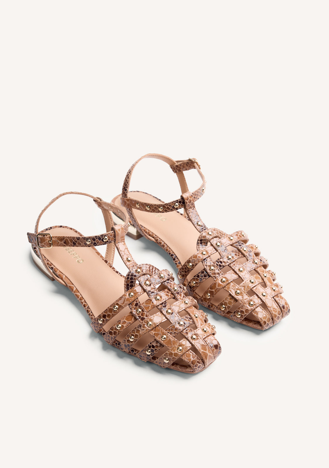 SANDALI GRANCHIO PELLE STAMPA ANIMALIER LONTARTA
