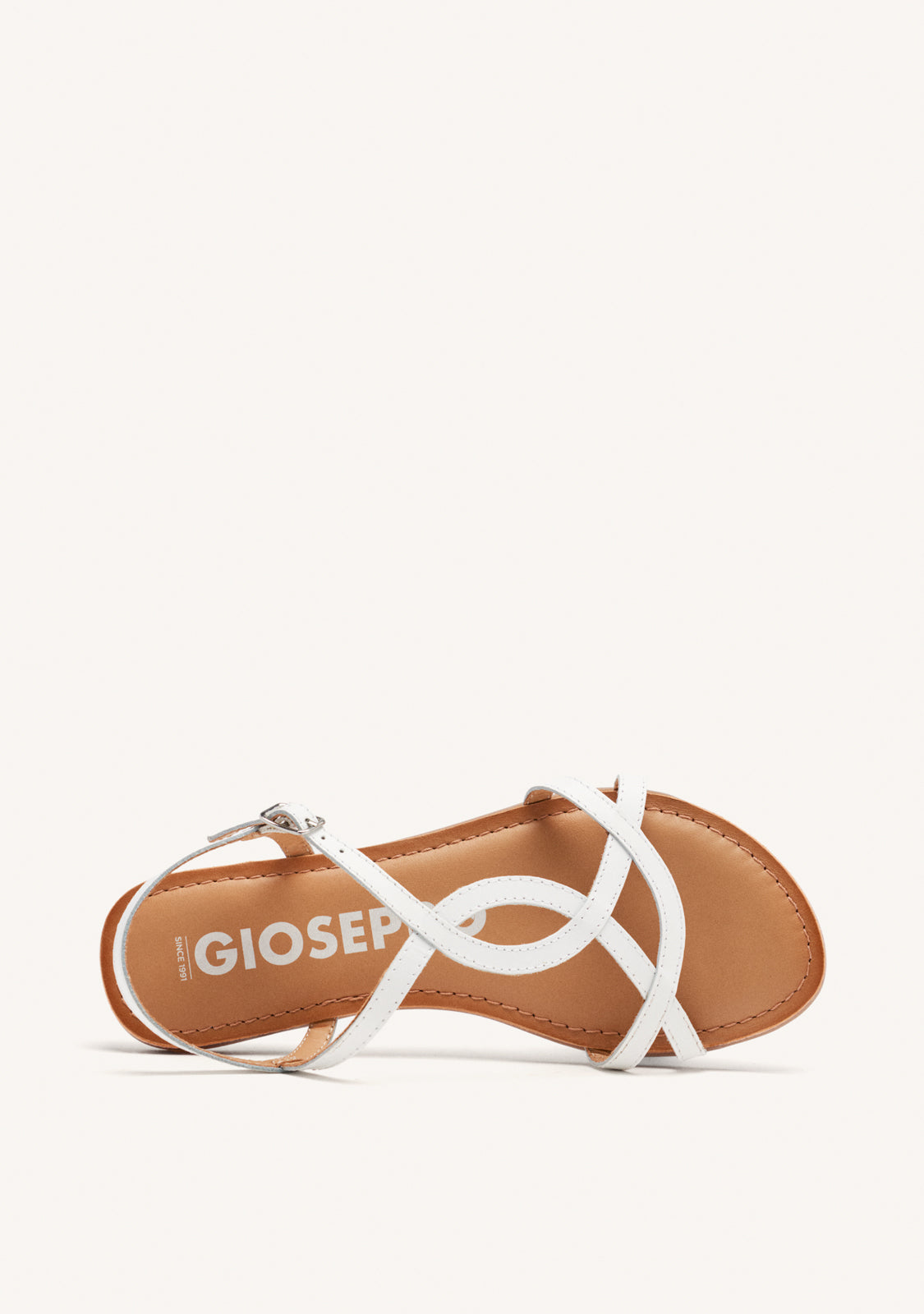 Sandali con strisce sottili in pelle colore bianco. Chiusura alla caviglia con fibbia. Sottopiede in pelle con imbottitura in lattice dal tatto morbido per garantire un maggiore comfort. Suola di pelle conciata in concerie che seguono un protocollo di concia più sostenibile secondo gli standard del Leather Working Group. Suola flessibile. Un basic che non passa di moda stagione dopo stagione.