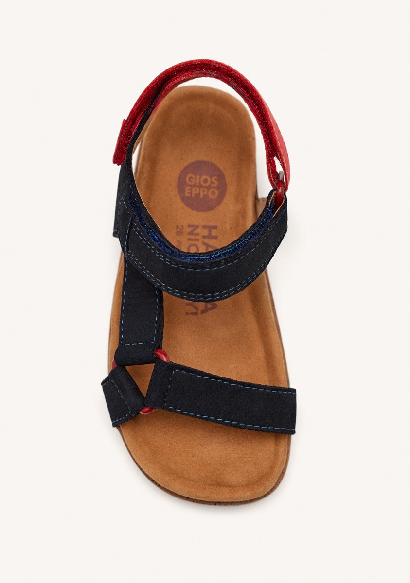 SANDALI IN PELLE BLUE NAVY CON ACCENTI ROSSI PER RAGAZZO E RAGAZZA DEPOE