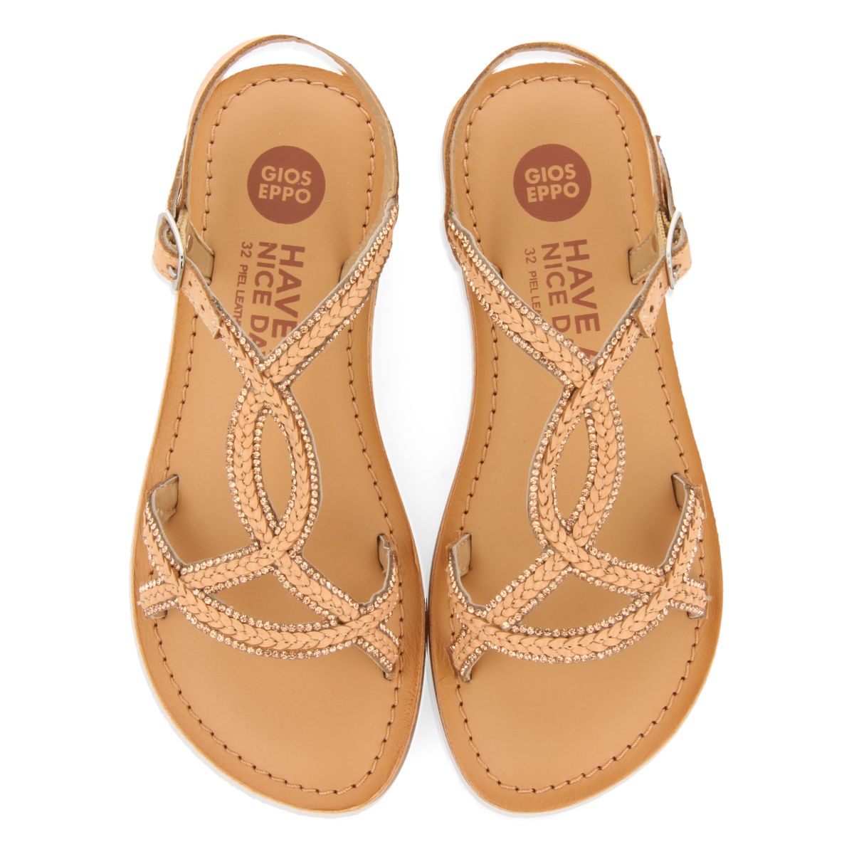 SANDALI COLOR NUDE IN PELLE CON PIETRE PER BAMBINA E BAMBINO AUCILLA
