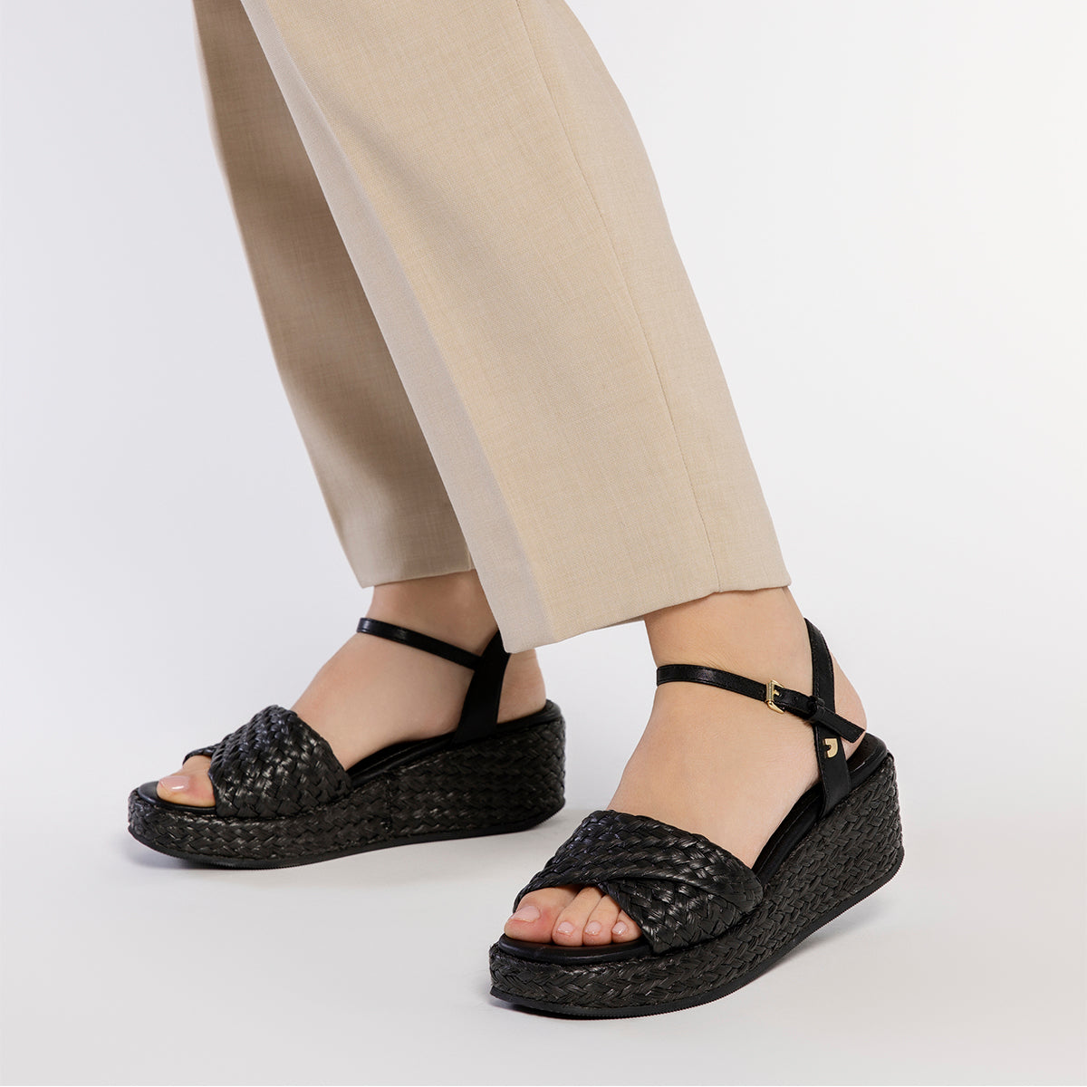 SANDALI IN RAFIA NERA CON PIATTAFORMA PER DONNA COOS