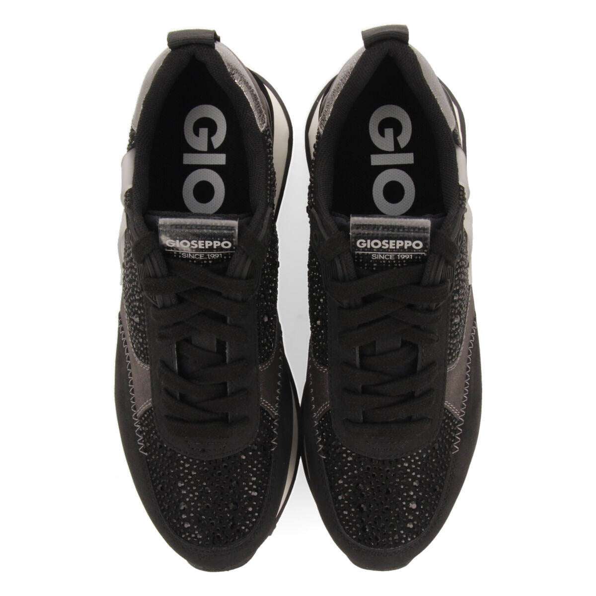 É ora di un paio di sneakers nuove! Sneakers nere monocolore con una base in materiale imbottito combinato con dettagli metallizzati e cristalli. Lacci in cotone organico. Soletta anatomica rimovibile. Fodera e soletta traspiranti in poliestere riciclato. Suola in EVA molto leggera con bordo rotondo e dentellatura. Scopri gli ultimi modelli sportivi da donna nella nuova collezione di Gioseppo Woman.
