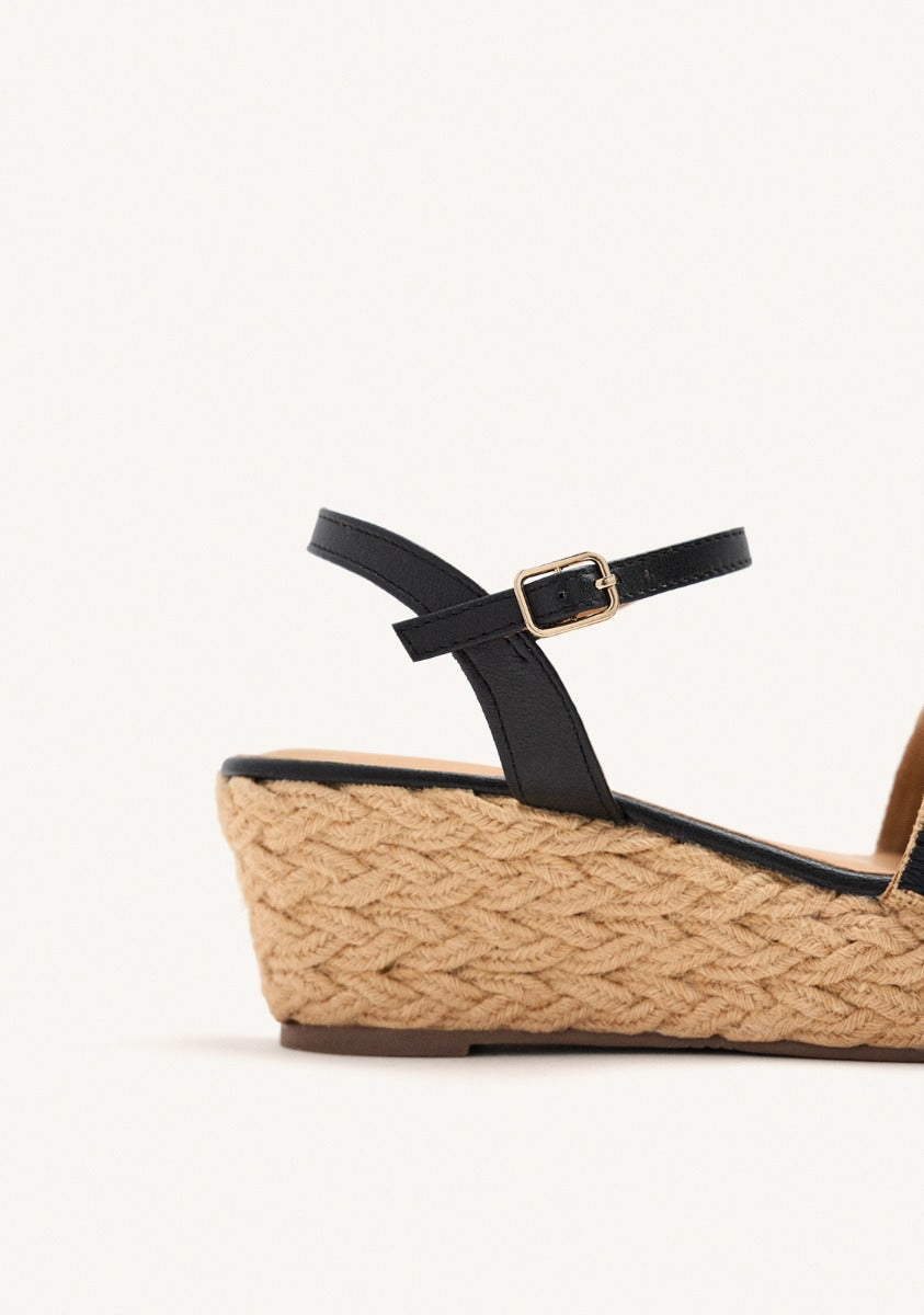 SANDALI CON RICAMI PELLE E ZEPPA IN RAFIA CANDIA