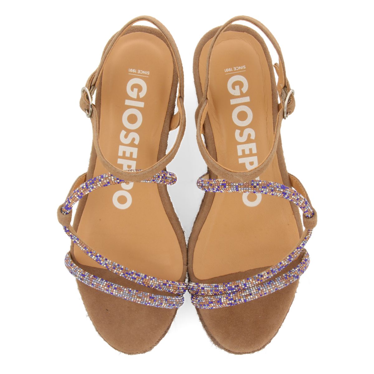 Non puoi perderle! Sandali color taupe con cinturini con microcristalli multicolor e zeppa di altezza media in iuta. Chiusura con fibbia alla caviglia per una maggiore tenuta. Sottopiede in pelle molto imbottito in lattice per un maggiore comfort. Fodera in pelle conciata in concerie che seguono un processo di concia più sostenibile secondo gli standard del Leather Working Group. Suola flessibile. Scopri la nuova collezione di sandali con zeppa da donna su Gioseppo Woman. Altezza del tacco 6 cm.