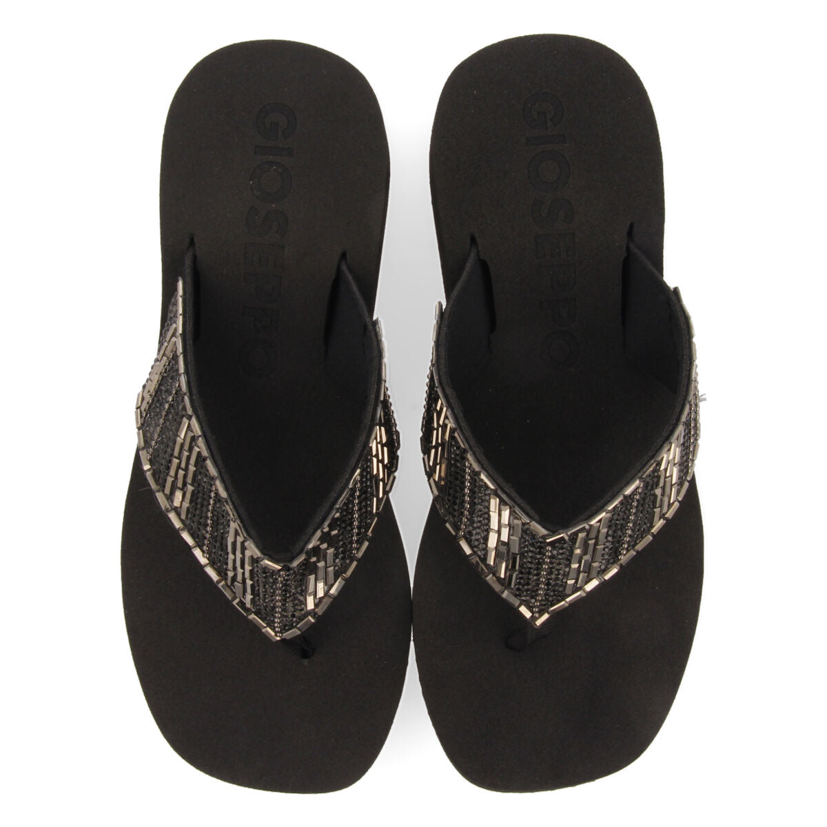 APIACA WOMEN'S BLACK WEDGES WITH DECORATIVE STONES
