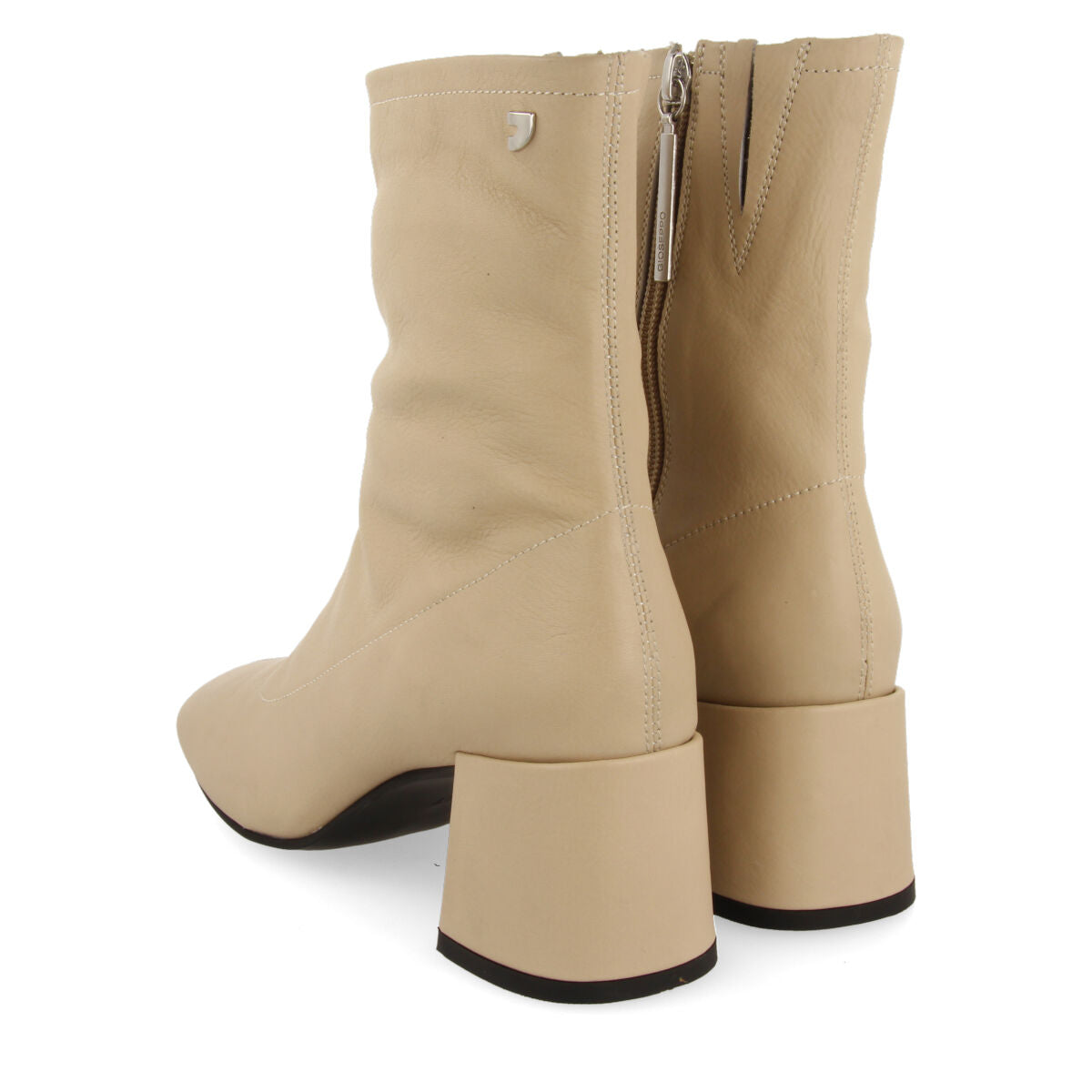 ARTAS WOMEN'S CREAM LEATHER ANKLE BOOTS WITH MID HEELS AND ROUND TOES