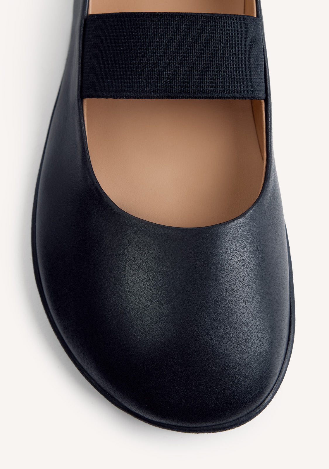 Leather ballet flats. Designed following minimalist trends to ensure a natural gait. Possible variations in the leather or finish between feet reflect the authenticity of the artisanal process and the use of natural leathers. Flexible and torsion-resistant. No splinting reinforcements. Flat, flexible TPR sole. Wide toe box. Zero drop. Breathable leather and polyester upper. Leather lining and insole.