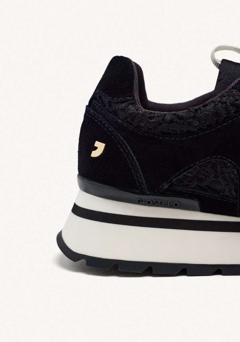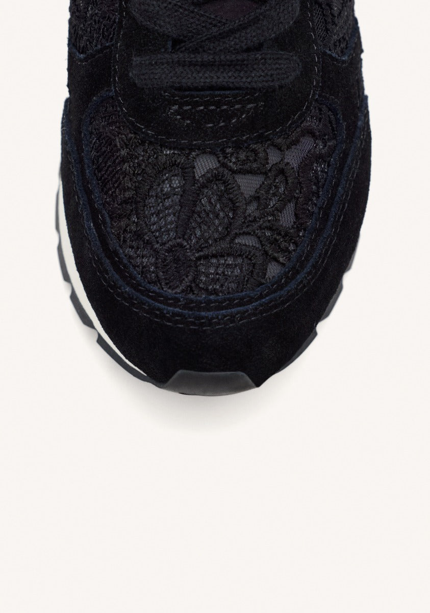 LEATHER AND LACE WEDGE SNEAKERS BEETOWN