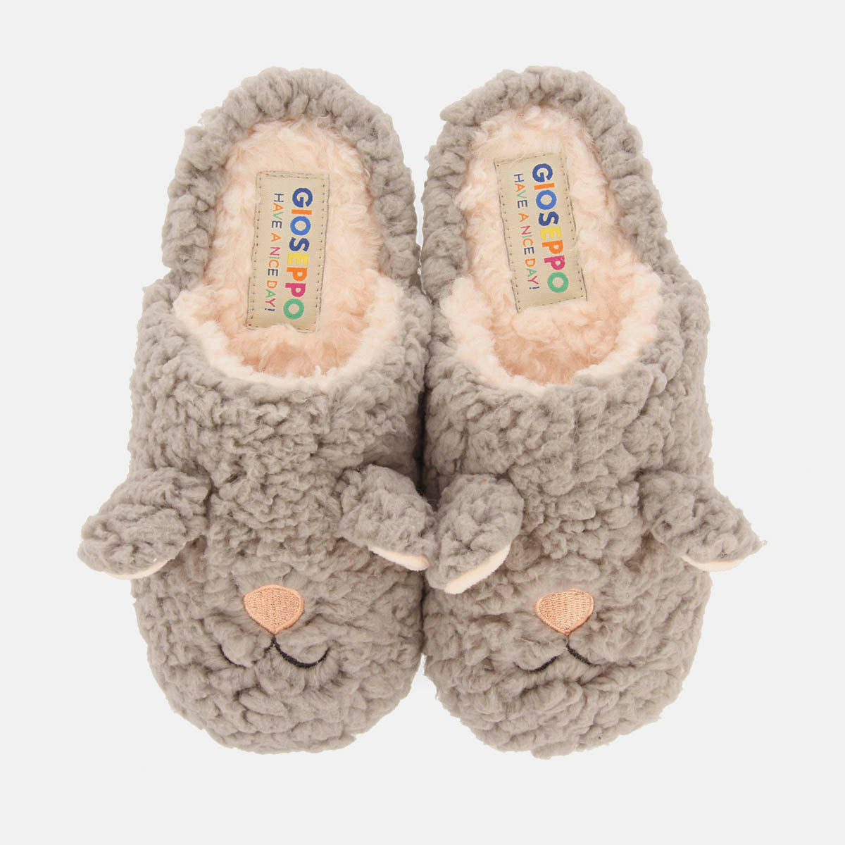 Can they be any cuter? Grey plush effect home slippers, embroidered with ears. They have a soft, padded and comfortable polyester insole and lining. The sole is made of non-slip and lightweight rubber. Don't miss out on the latest home fashion trends.