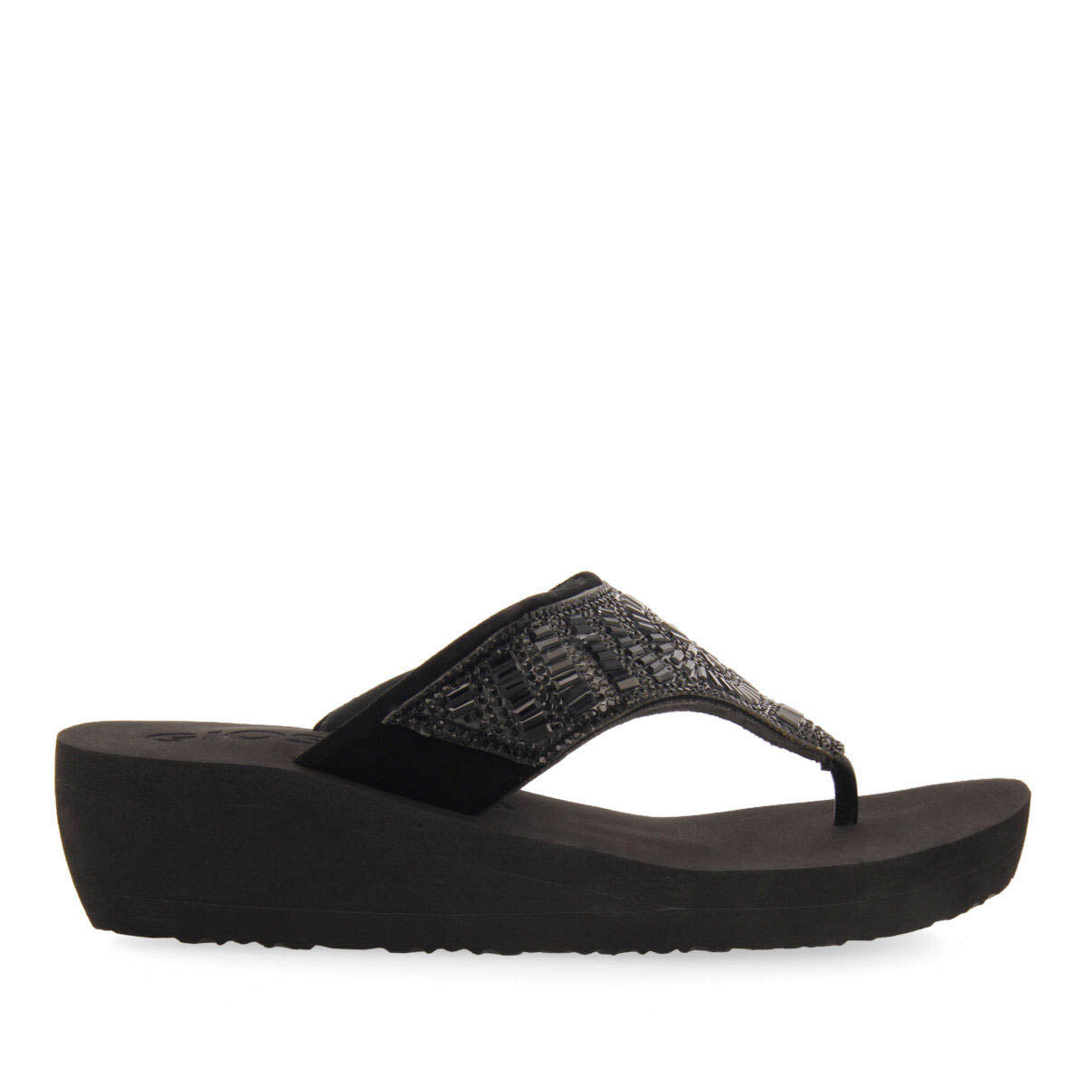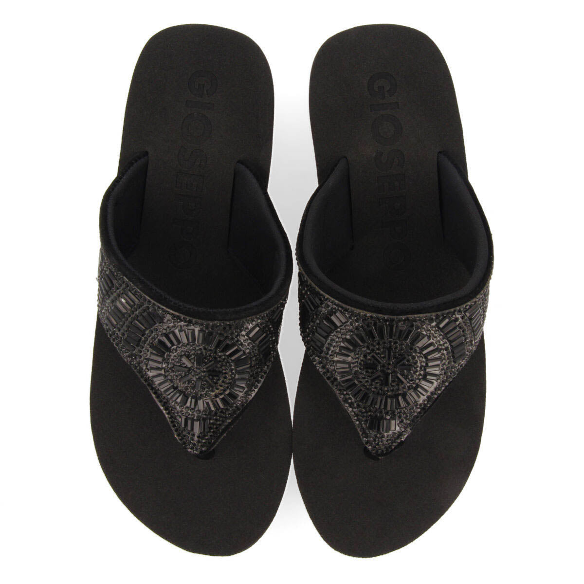 SURESNES WOMEN'S BLACK WEDGES WITH DECORATIVE STONES