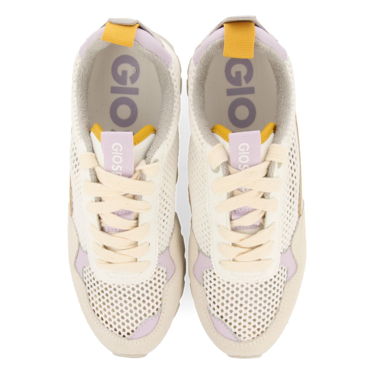 Very light and super fresh :). White sneakers with cotton mesh fabric that combine pieces in yellow and mauve tones. The toe and heel are made of suede. Removable anatomical insole. The thread of the laces used in the production of this model has the certified guarantee seal of the Global Organic Textile Standard (GOTS). The thread of the fabrics used in the production of the lining of this model has the certified guarantee seal of the Global Recycled Standard (GRS). This model has the PODOLOGIC seal, which certifies that it has been manufactured with wider lasts, improving its flexibility. PODOLOGIC models also adapt perfectly to the most sensitive and delicate feet, achieving the greatest comfort. This project has been designed in collaboration with the Official College of Podiatrists of the Valencian Community (ICOPCV) to promote the care, knowledge, and attention that foot health requires. Heel height 4 cm.
