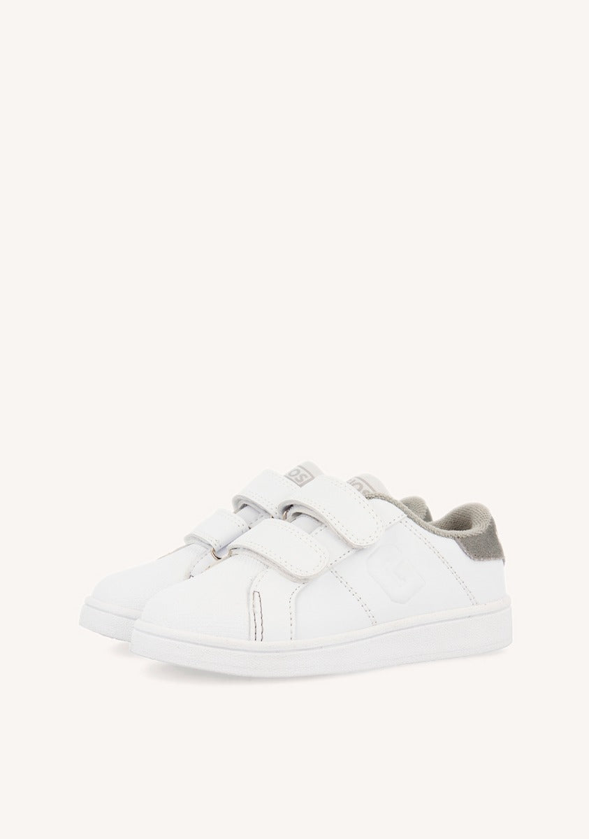 SNEAKERS TIPO COLEGIAL BRANCAS COM DETALHE EM CINZENTO E FECHO DUPLO AJUSTÁVEL VOLSK