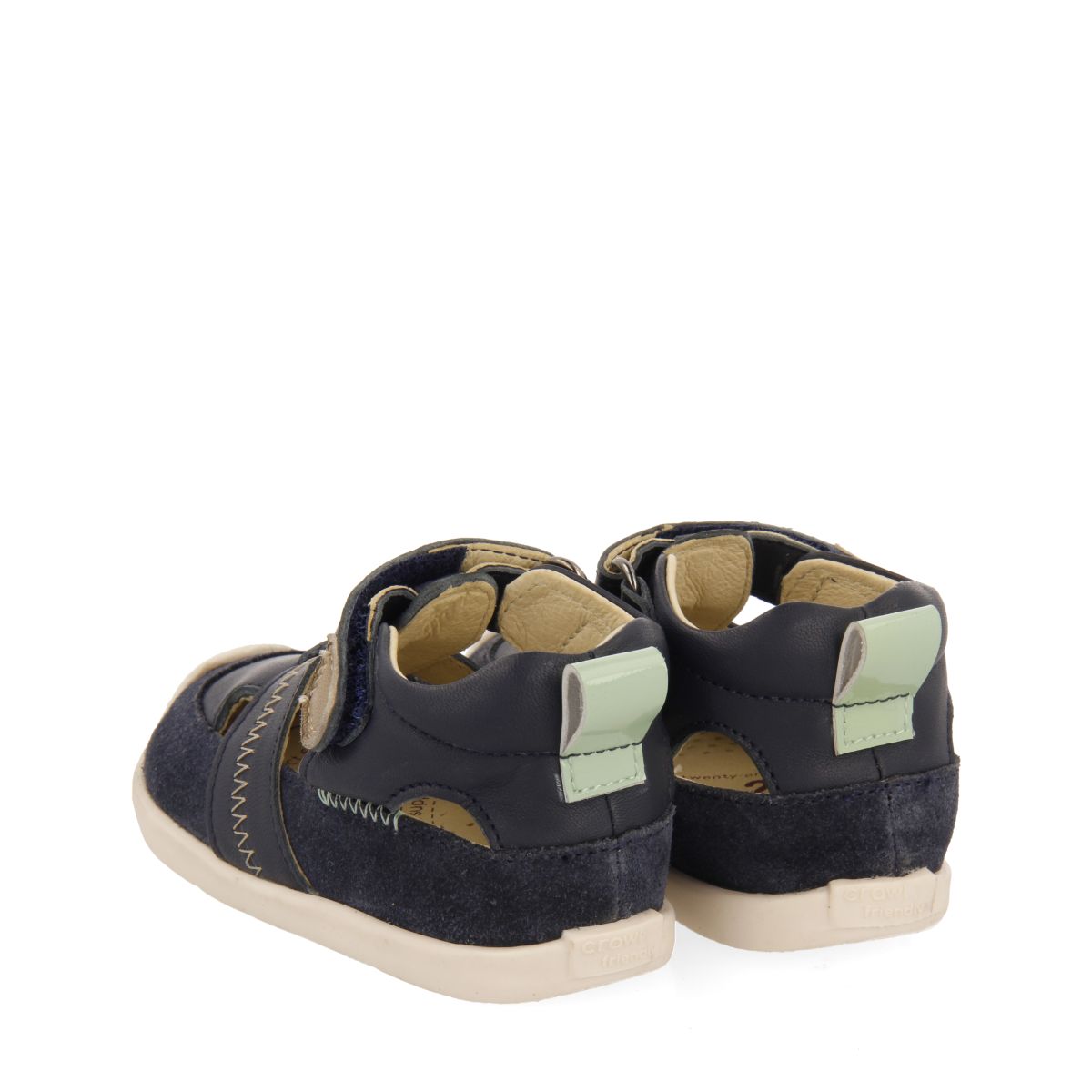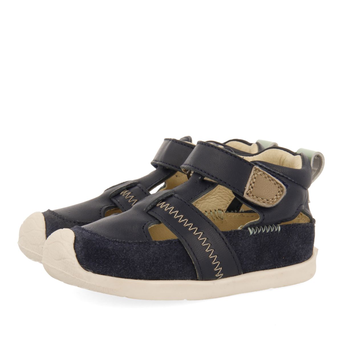 SANDÁLIAS DE COURO AZUL MARINHO ESTILO CANGURU COM DETALHES COLORIDOS PARA BEBÊ SLLOVE