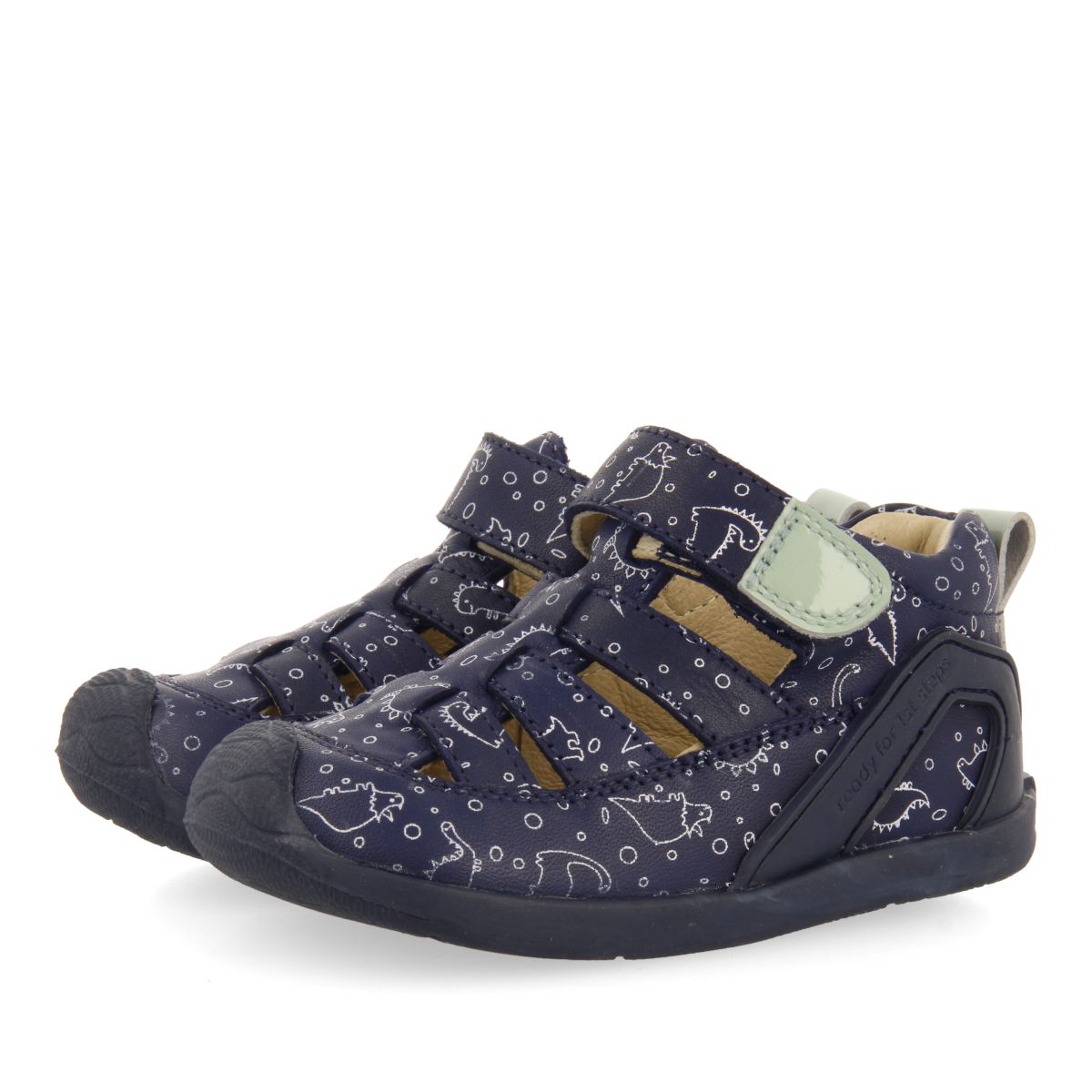 SANDÁLIAS AZUL MARINHO DE COURO ESTILO CANGURU COM ESTAMPA FANTASIA PARA BEBÊ DEVOLL