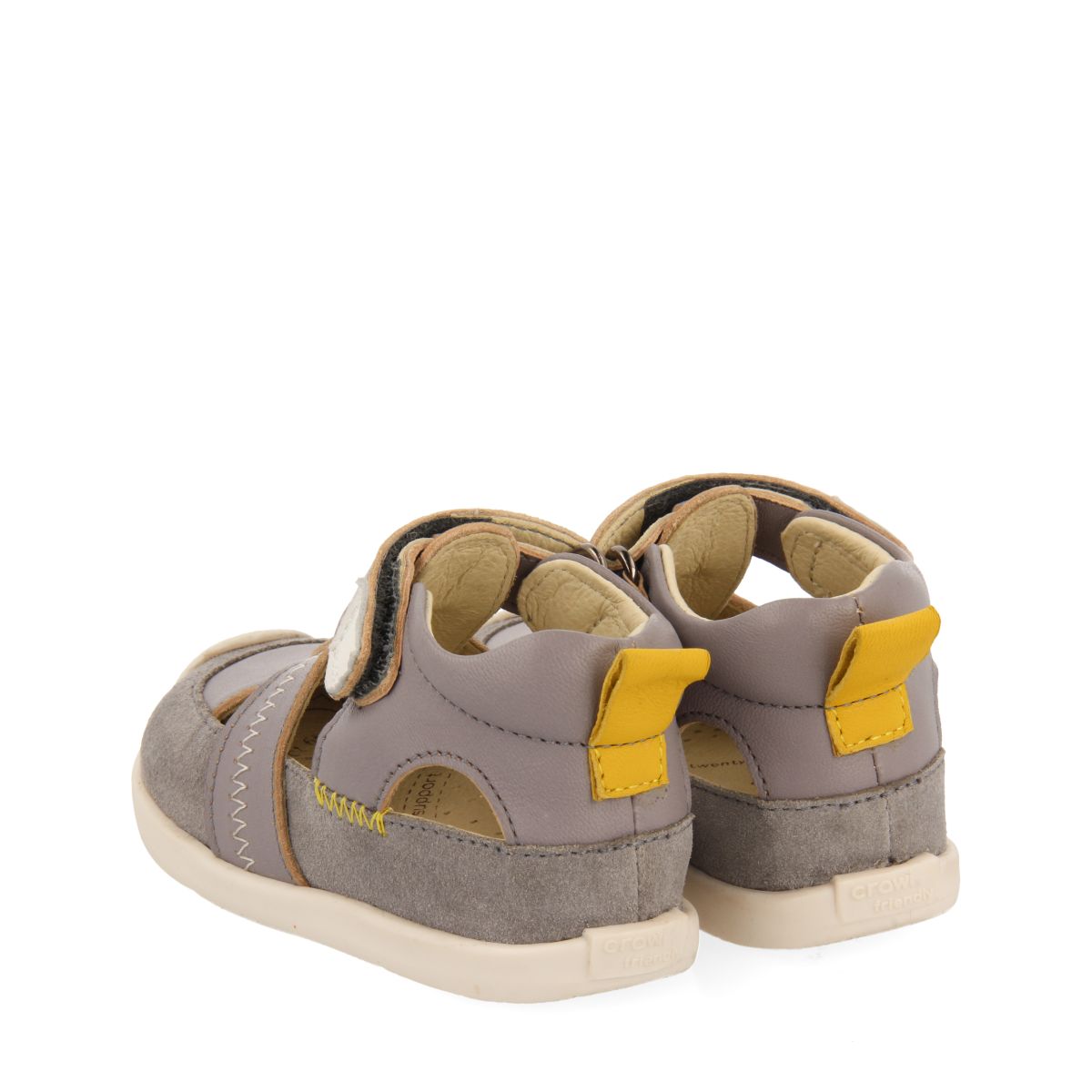 SANDÁLIAS CINZENTAS DE PELE ESTILO CANGREJEIRAS COM ACENTOS DE COR PARA BEBÊ SLLOVE