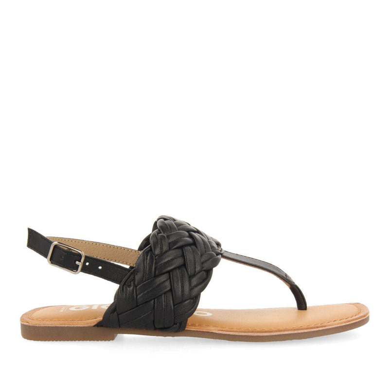 SANDÁLIAS RASAS PRETAS EM PELE TRANÇADA PARA MULHER SERGINES