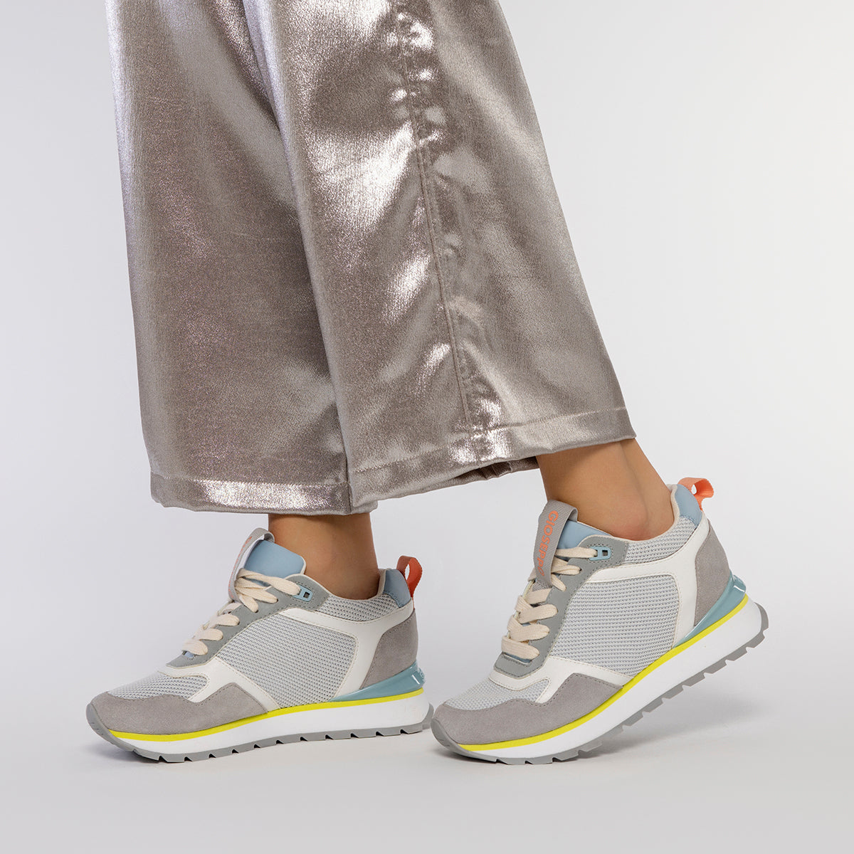 SAPATILHAS BRANCAS COM SALTO INTERNO E DETALHES MULTICOLORIDOS PARA MULHER RANDAZZO